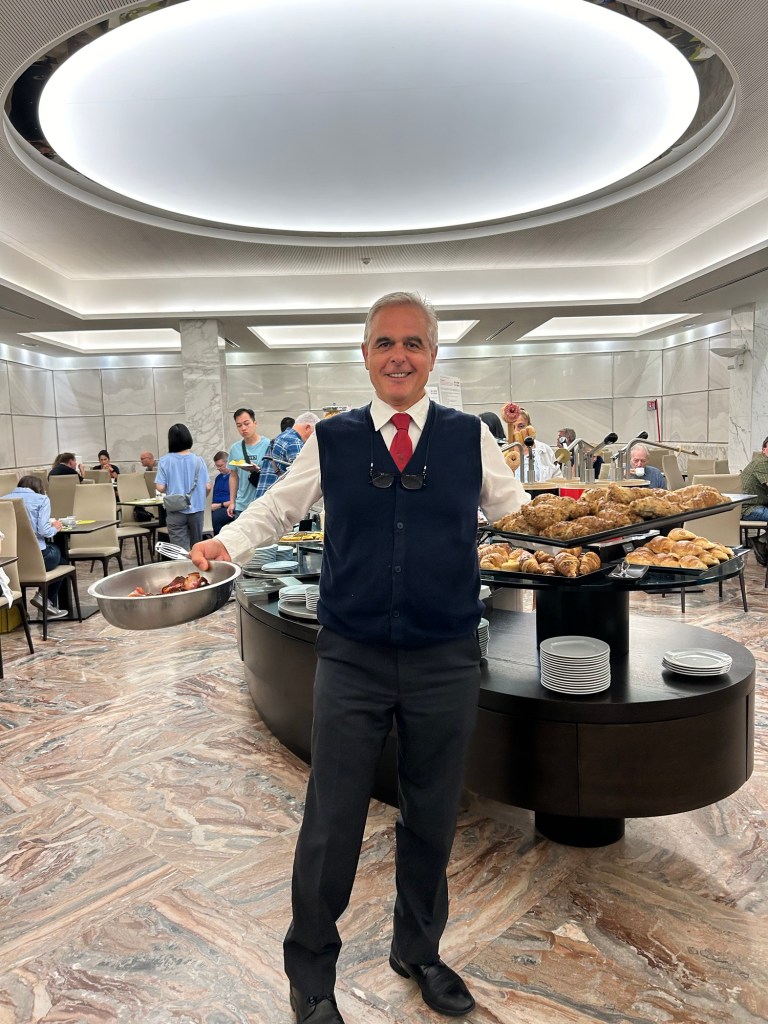 The breakfast is a buffet; nothing cooked to order. The coffee is terrible – very unexpected. We found a coffee shop open early so we can walk out for a good cappuccino.
