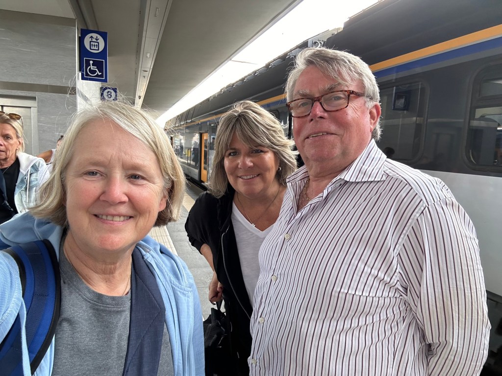 The snow covered Alps and bucolic scenery is wonderful; but can’t be captured in a photo because our reflections appear in the window.